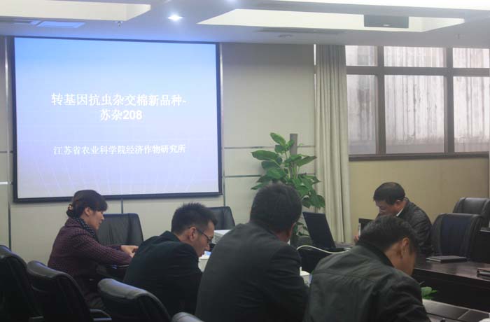 肖松华作为“苏杂208”选育人,介绍了该品种的特征、特性以及在审定和多点示范中的表现。该品种在2008-2009年两年区试产量均处第一位,在参加2010年的生产试验中,是唯一一个比对照增产的品种,也是江苏省农科院经作所近年又一区试生产试验“三连冠”品种。审定编号:苏审棉201301,属转基因抗虫棉杂交一代种,已获得农业部转基因生物安全证书。