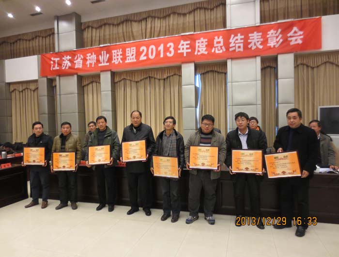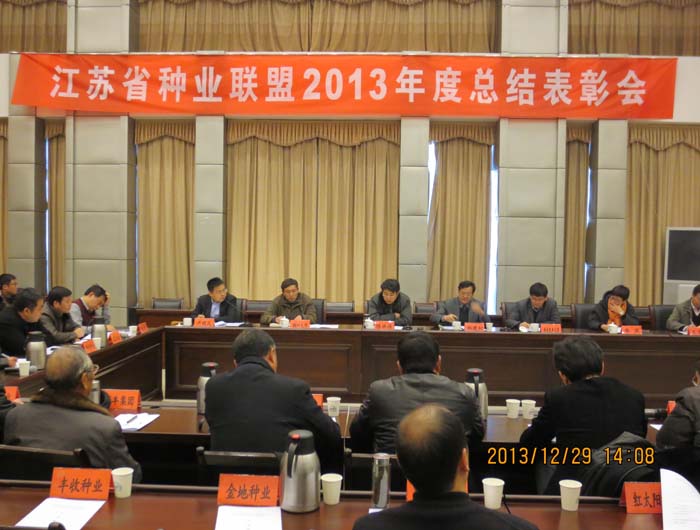 2013年12月29日,江苏省种业联盟2013年度总结表彰会在江苏省农科院召开。省科技厅农村科技处处长陈洪强,省农科院副院长郑建初、省农科院科研处处长黄俊、省农科院知识产权处处长艾玉春,省种业协会李燕,及联盟各成员单位主要负责人出席会议。