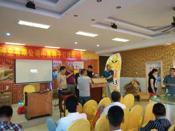 参加会议的利辛各乡镇经销商和种田大户代表有150多人,大家对本品种给予高度评价,纷纷抢订“淮麦33”小麦品种,现场实现订购120万斤。本次会议的成功召开也拉开了我公司“淮麦33”县级市场销售订购会的序幕。本着“良种良法,服务三农”的理念,公司将为广大农民提供最好最优质的种源和科学的配套栽培方法,为粮食增产、农民增收做出应有的贡献。