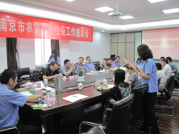 继江苏省植物检疫宣传月活动启动之后,南京市植保站组织召开了南京市农业植物检疫工作座谈会,我公司有幸承办了此次座谈会,于9月23日在公司3楼会议室举行。会议由南京市植保站站长陈传翔主持,省植保站龚伟荣科长、市植保站陈嗣茂科长、市农业执法大队王立富队长、窦存银队长、市种子站张兆旭站长等出席会议,我公司及大华种业、中江种业、绿领种业等多家企业参加会议。