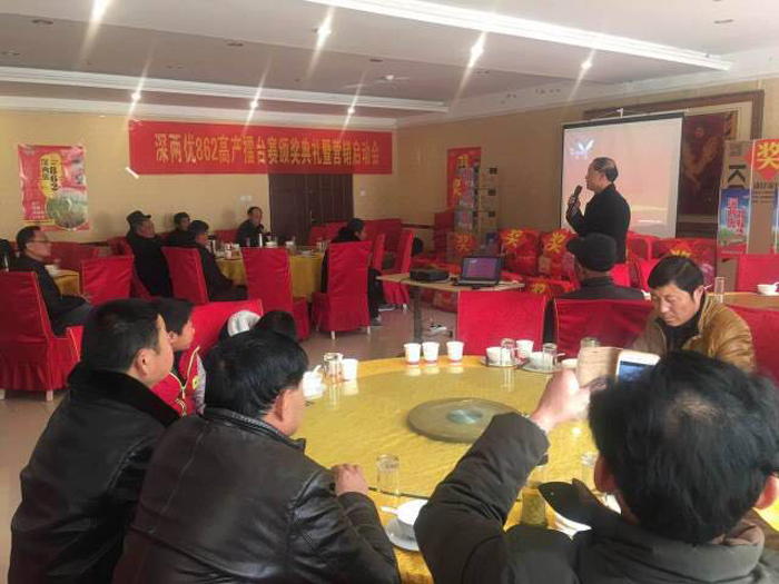 2016年11月10日和11日,江苏明天种业科技股份有限公司分别在安徽省淮南市和寿县召开了“深两优862高产擂台赛颁奖典礼暨营销启动会”。会议议题:总结深两优862 2016年品种表现、深两优862品种优势分析、高产擂台赛颁奖典礼和下一年度深两优862高产擂台赛规则。