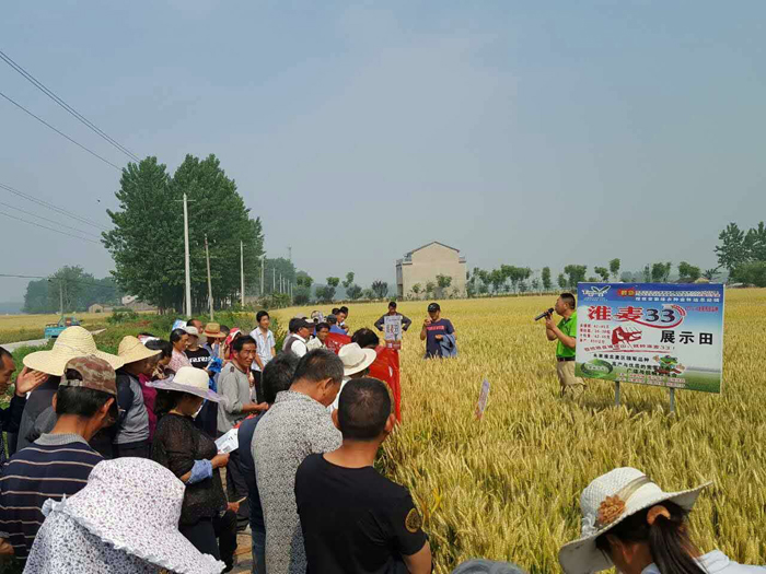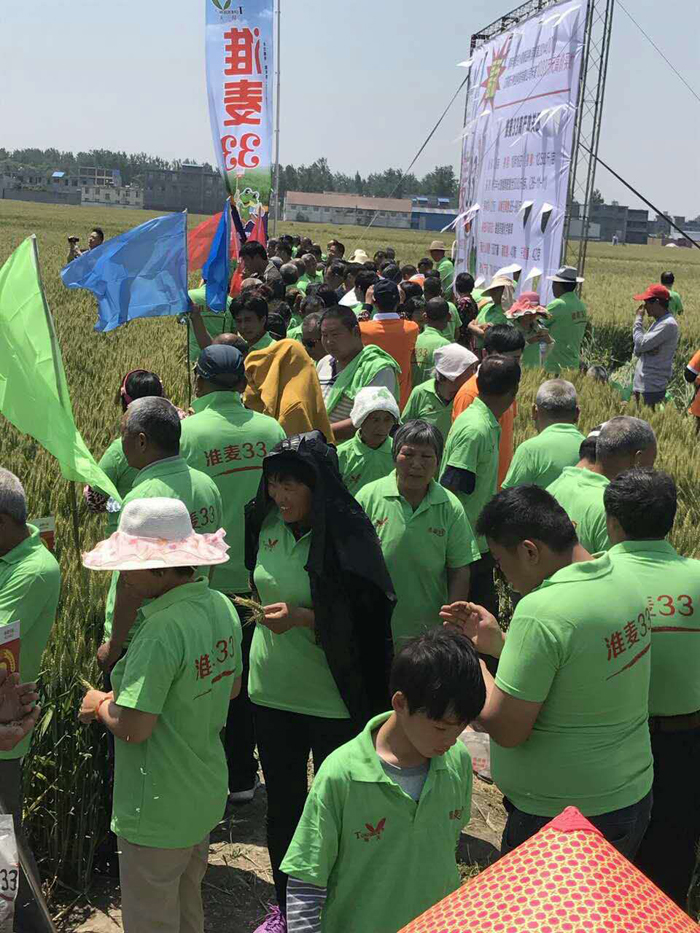 5月中下旬,固镇、泗县、灵璧、宿州、五河、怀远、临泉、淮北、蒙城、淮南、阜阳、阜南、涡阳、利辛等各县市紧锣密鼓,邀请零售商和农户观摩淮麦33长势,介绍品种特征特性和淮麦33近几年取得的骄人成绩、口碑,并以各种创新形式做宣传订购等活动,让零售商卖的放心、农民种的安心、“要想粮食堆成山,就种淮麦33”的口号更加深入人心。在小麦收获时期,各地纷纷传来高产喜讯,分享种植淮麦33的喜悦心情。在我们的共同努力下,淮麦33必将掀起新一轮小麦种植高潮,成为安徽白麦区的领军品种。