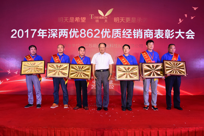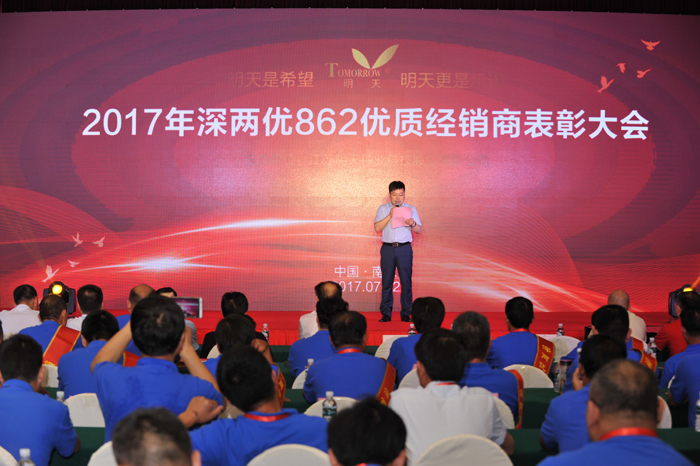 火红七月,流光溢金,在这么璀璨的日子里,公司在六朝古都--南京隆重召开了“2017年度深两优862优质经销商表彰大会”。江苏明天种业首席育种家、两优培九育成人邹江石,公司总经理严辉民、副总经理杨地龙、副总经理胡玉成、研发总监王波、广西恒茂总经理左科生、江西科源董事长曾良明等领导以及来自江苏、安徽、湖南、湖北、河南、江西和陕西等省的150多位经销商代表共同出席了此次会议,从每一位到场的嘉宾与合作伙伴的眼神中都可以看到他们对此次会议的热切期盼。