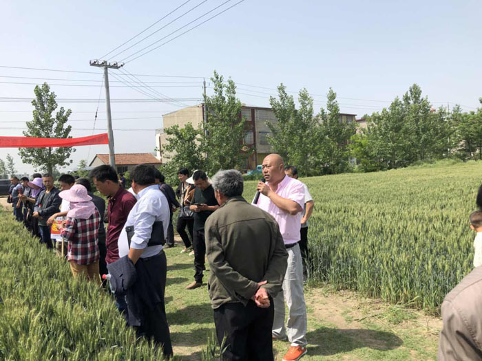 阜南站:现场观摩的有8个小麦品种,阜南县各乡镇经销商在仔细察看对比后,最终认为淮麦33是综合性状最好的小麦品种,比来比去还是淮麦33好,卖了放心。