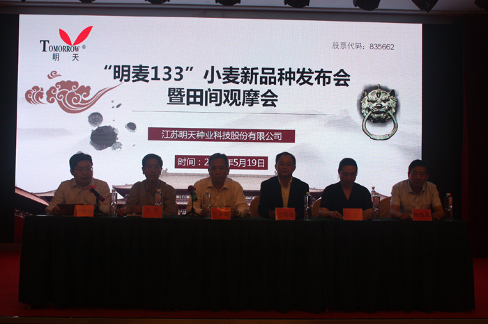 2018年5月18日至19日,江苏明天种业明麦133小麦新品种发布会暨现场观摩会在东台市成功召开,公司邀请了江苏省种子管理站站长何金龙、江苏省作物栽培技术指导站副站长王龙俊、东台市农业委员会副主任王玫及江苏农业科技报主编唐建明,公司总经理严辉民、副总经理杨地龙一同出席此次会议。